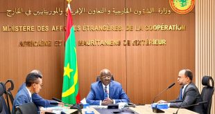 استقبل معالي و زير الداخلية وترقية اللامركزية و التنمية المحلية السيد محمد أحمد ولد محمد الأمين اليوم الإثنين بمكتبه سعادة السيد بشير أبو حطب، سفير دولة فلسطين الشقيقة لدى بلادنا. و خلال اللقاء تم بحث أوجه التعاون بين البلدين، خاصة ما يدخل منها ضمن اختصاص وزارة الداخلية و ترقية اللامركزية و التنمية المحلية. حضر اللقاء الأمين العام للوزارة السيد عبد …