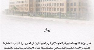 تعرب وزارة الشؤون الخارجية والتعاون الإفريقي والموريتانيين في الخارج عن إدانتها واستنكارها الشديدين لأعمال الشغب والتخريب التي استهدفت سفارة دولة الإمارات العربية المتحدة الشقيقة ومقر رئيس بعثتها في دمشق، وما شكلته من انتهاك لحرمة البعثات الدبلوماسية ومخالفة صريحة لأحكام القانون الدولي. كما تعرب الجمهورية الإسلامية الموريتانية عن تضامنها الكامل مع دولة الإمارات الشقيقة.