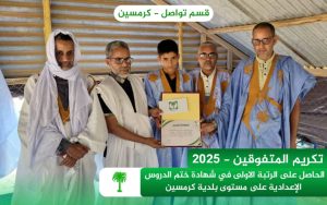 قدم قسم تواصل كرمسين تكريما للناجحين في المسابقات الوطنية تمثل في شهادة تكريم ومبلغ مالي، وتمت زيارة المكرمين في منازلهم لتقديم التكريمات، والتهنئة بمناسبة التفوق.