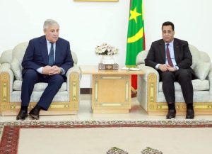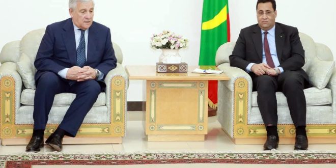 استقبل صاحب المعالي الوزير الأول، السيد المختار ولد اجَّاي اليوم بمكتبه، وفدا هاما من جمهورية إيطاليا برئاسة السيد آنتونيو تايّاني نائب رئيس مجلس الوزراء ووزير الشؤون الخارجية والتعاون الدولي لجمهورية إيطاليا، وعضوية وزير الداخلية الإيطالي السيد ماتيو بيانتيدوزي وعدد من المسؤولين في مجالات التنمية الاقتصادية والاستثمار، وسفيرة جمهورية إيطاليا المعتمدة في نواكشوط السيدة لورا بوتا.