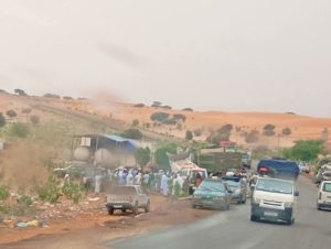 وقع قبل قليل حادث سير. مؤليم مؤليم عند المدخل الغربي لمدينة بوتلميت، إثر اصطدام بين عدة سيارات من بينها شاحنات، وسيارة من نوع هايلكس، شاحنة كبيرة، وسيارة نقل صغيرة.