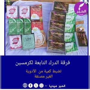 تضبط كمية معتبرة من المنتجات غير المصنفة كأدوية مرخصة.