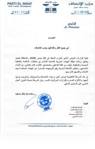 إلى جميع الأطر والفاعلين بحزب الإنصاف