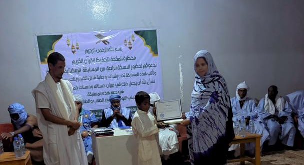 في أجواء إيمانية مفعمة بنور القرآن الكريم، احتضنت محظرة “المكجة” لتعليم القرآن الكريم حفل اختتام مسابقتها القرآنية الكبرى وتكريم الطلاب المتفوقين، وذلك تحت الرعاية الكريمة لسيادة النائب ويتات ولد سيدي يعرف.