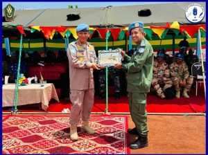 وخلال الحفل، تمّ منح الأوسمة للعناصر الذين أدّوا مهامهم بكفاءة واحترافية، سواء في تأمين السكان، أو حماية القوافل الإنسانية، أو تنفيذ مختلف الواجبات اليومية وفق معايير الأمم المتحدة.