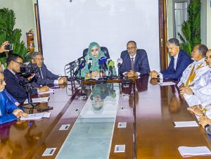 وأوضحت معالي الوزيرة، في تصريح أدلت به عقب اجتماع عقدته مساء اليوم الخميس مع رئيس الاتحاد الوطني لأرباب العمل الموريتانيين والفاعلين الاقتصاديين والصناعيين، بمقر وزارة التجارة والسياحة، أن الدولة تتابع عن كثب مختلف التطورات، داخليا ودوليا، لا سيما ما يتصل بحياة المواطنين، مع جاهزية تامة لاتخاذ ما يلزم من قرارات لضمان حمايتهم وتوفير ظروف عيش كريمة لهم.