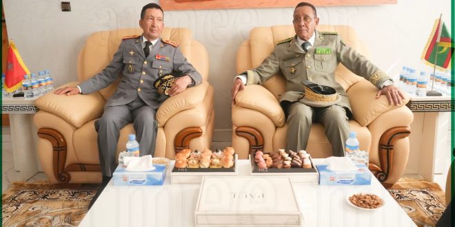 استقبل قائد الأركان العامة للجيوش؛ الفريق محمد فال الرايس الرايس، زوال اليوم الإثنين 06 أبريل 2026، بالمطار العسكري بنواكشوط، وفدا عسكريا من القوات المسلحة الملكية المغربية، بقيادة الفريق أول محمد بريظ؛ المفتش العام للقوات المسلحة الملكية المغربية وقائد المنطقة الجنوبية.