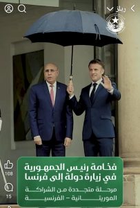 أفادت إذاعة فرنسا الدولية أن الرئيس محمد ولد الشيخ الغزواني خلال زيارته لفرنسا، سجري مباحثات مع نظيره إيمانويل ماكرون في قصر الإليزيه لبحث قضايا “مهمة”.